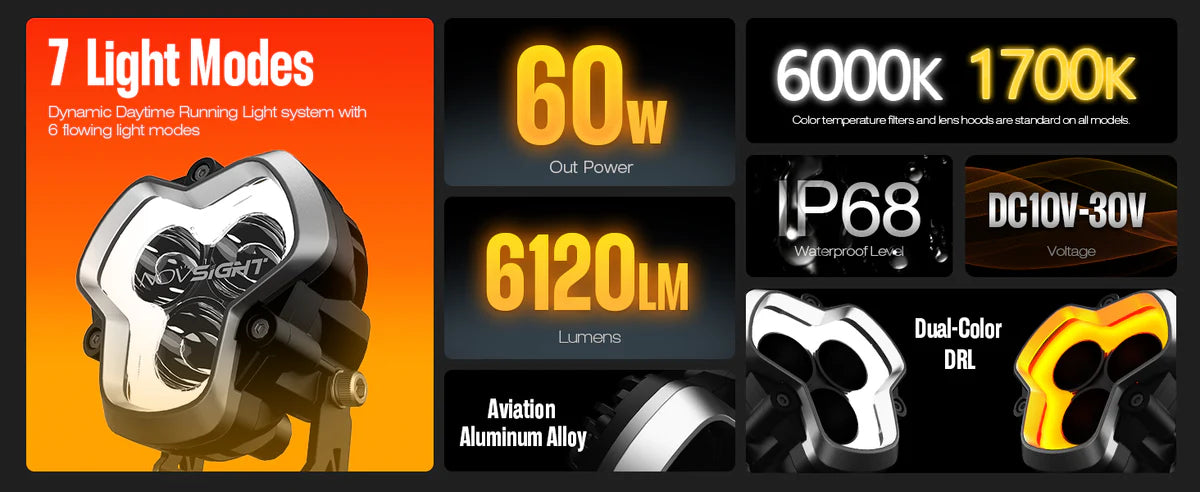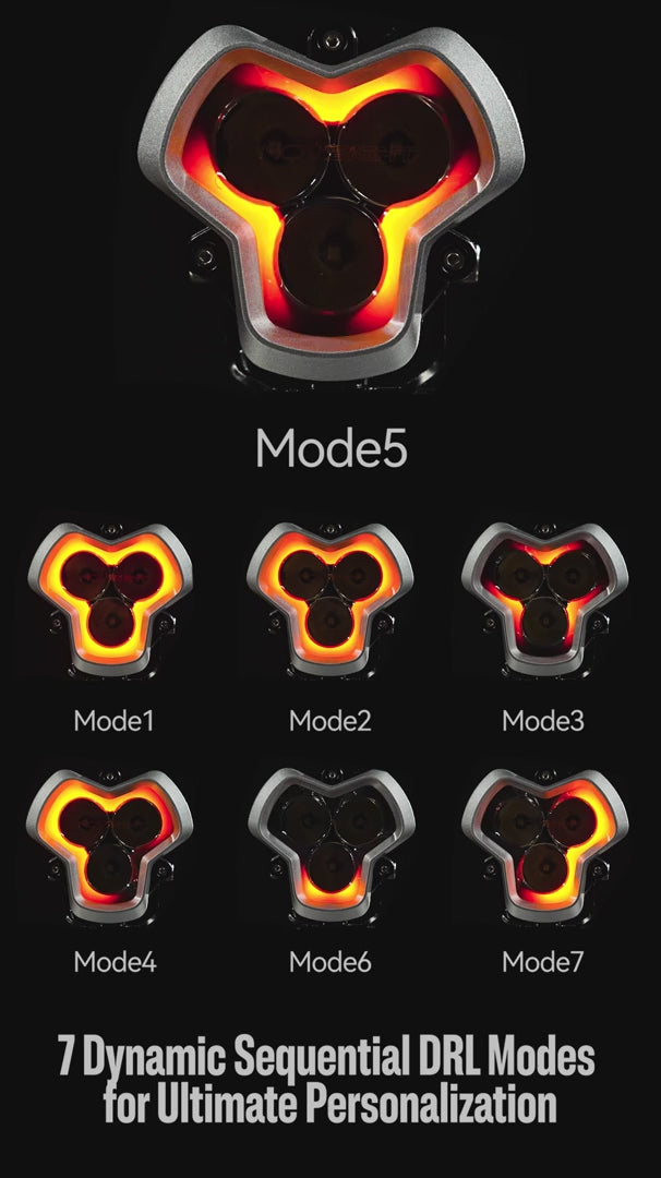 世界初、7種類のカスタマイズ可能なライトパターンを搭載。業界初の流水のような動きなど、独自の演出であなたの愛車を個性的に彩ります。極限のアドベンチャーにも耐える設計で、どんなフィールドでも圧倒的な明るさと存在感を発揮。