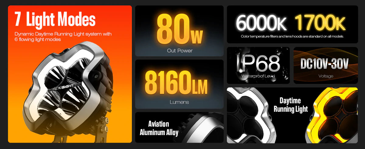 NovSight HALO Pro 6インチ レビュー動画スポット/コンボビームに対応し、7種類のダイナミックDRLモードを搭載。カスタムは思いのまま。スタイルも演出も、すべてあなた次第。