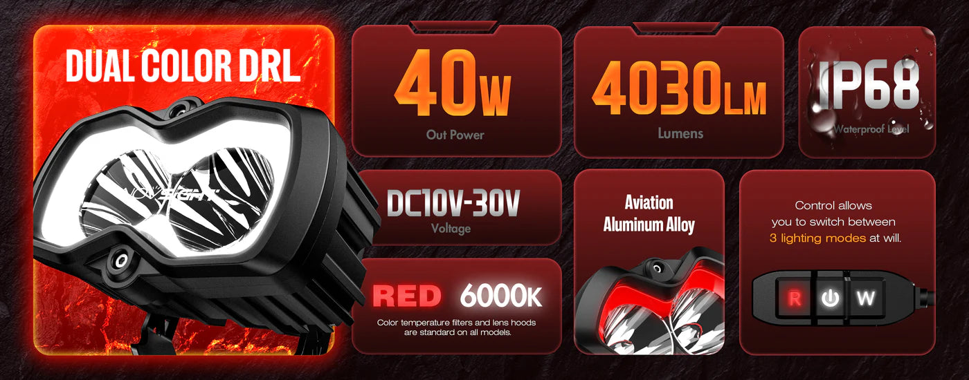 HALO SE Series 4.5インチ LED Pod Lights with Red and White DRL