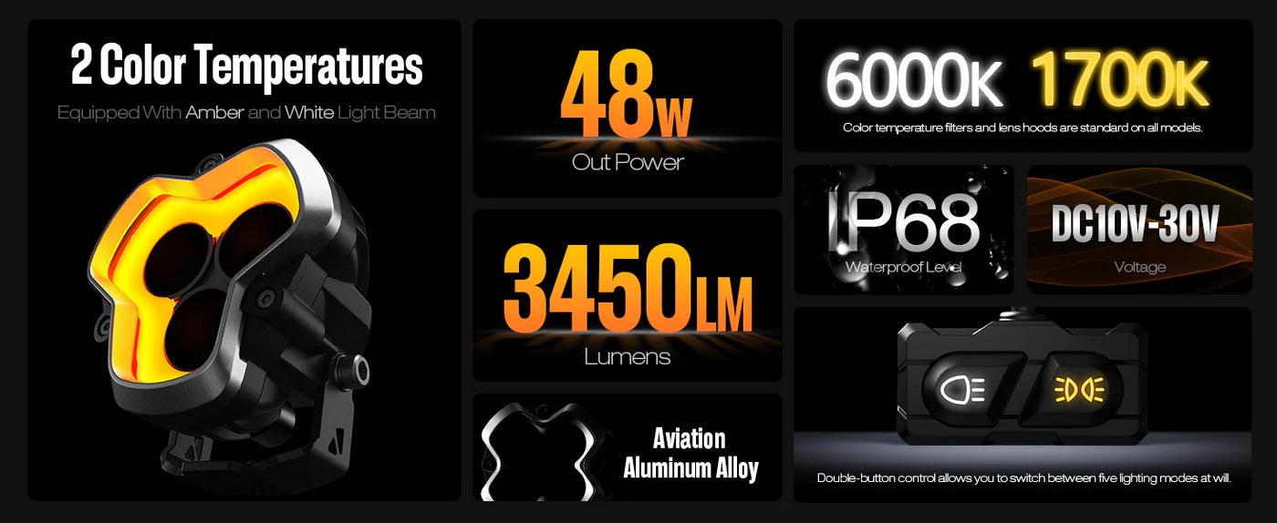 HALO Series 3インチ LED Pod Lights with DRL 48W Twin Light Kit System Pair