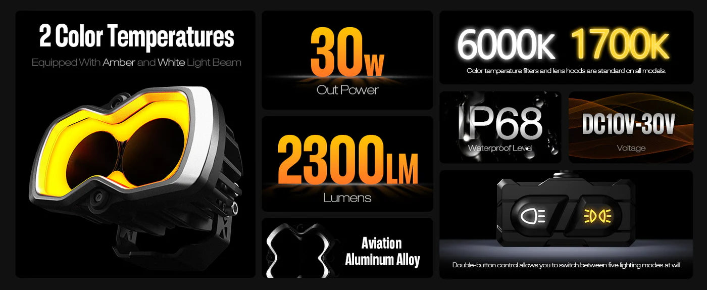 HALO Series 4.5インチ LED Pod Lights with DRL 35W Twin Light Kit System Pair